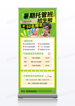 潮流卡通暑假儿童作业辅导班托管招生优惠海报