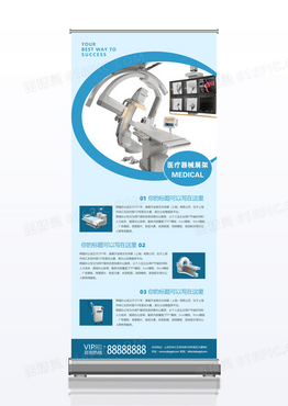 创意f大气蓝色简约医疗器械宣传展架易拉宝