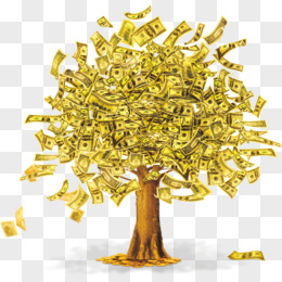 手绘金色钱币红包摇钱树素材