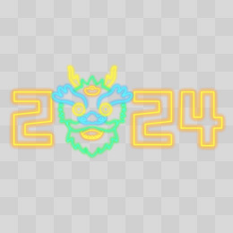 霓虹灯发光彩色2024年龙年标题免抠元素