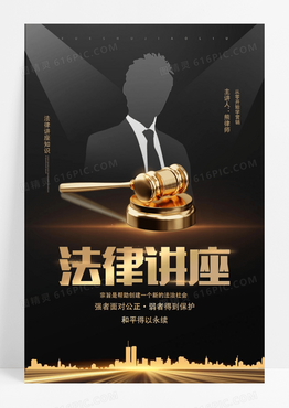 黑金简洁创意法律讲座宣传海报