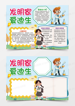 蓝色发明家爱迪生科技创造卡通爱迪生手抄报