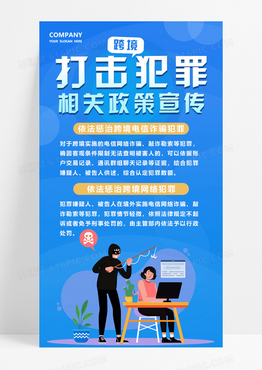 蓝色渐变打击跨境犯罪政策宣传手机海报