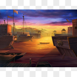 城市大桥帆船背景素材