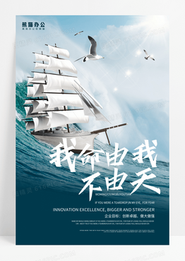 海浪帆船海鸥蓝天励志大气企业文化海报