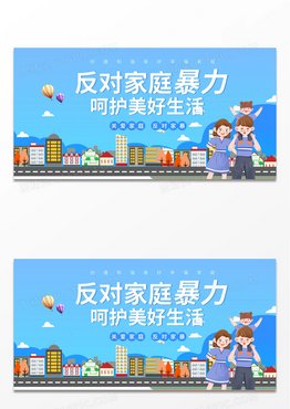 简约时尚卡通城市文明反对暴力展板背景反对家庭暴力海报