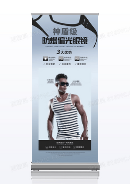蓝灰渐变防爆偏光太阳镜促销宣传展架