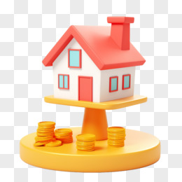 3D立体风格法拍房天枰称房子和金币免抠元素