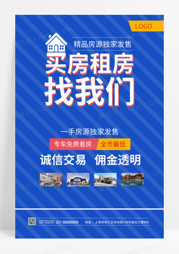 买房租房房屋中介租赁买卖蓝色背景宣传单宣传海报