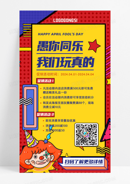 卡通儿童愚你同乐愚人节我们玩真的促销手机宣传海报