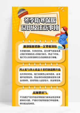 黄色手绘冬季防寒保暖常识及注意事项手机长图