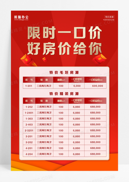 红色背景特价房房价宣传单海报设计
