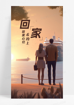 卡通手绘一家人欢欢喜喜回家过年免抠元素