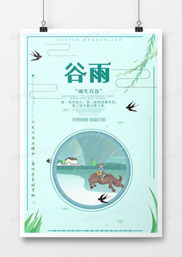 手绘水彩柳树发芽牧童牧牛场景免抠元素