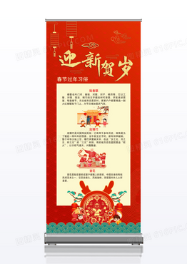 粉色喜庆迎春贺岁春节习俗x展架易拉宝