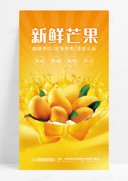 餐饮美食橙黄色放射性线条简洁鲜艳实拍芒果手机宣传海报