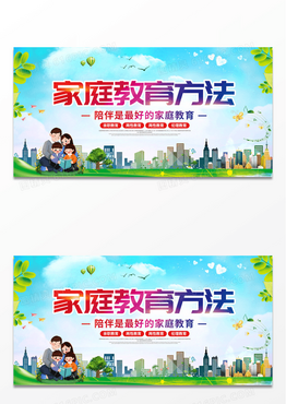 简约蓝色大气家庭教育方法宣传展板家庭教育海报