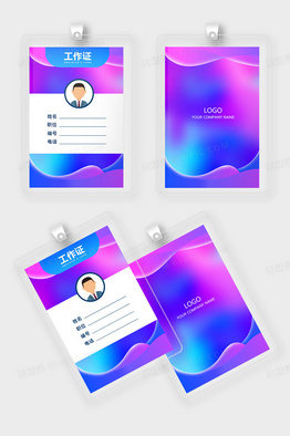 简约炫彩流体动感大气企业工作证模板工作证横向横版