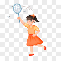 手绘卡通女孩电蚊拍打蚊子免抠元素