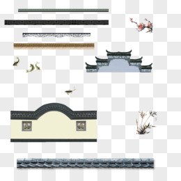 手绘插画下霜中式建筑素材