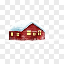 手绘红色可爱雪景房屋