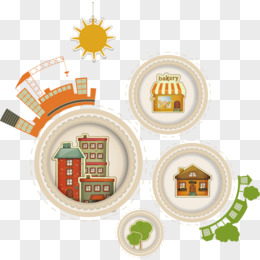 平面插画城镇广场免抠元素