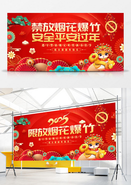 红色喜庆2025限放烟花爆竹宣传展板禁止燃放烟花爆竹