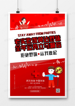 红色简约拒绝野味武汉加油疫情口号海报