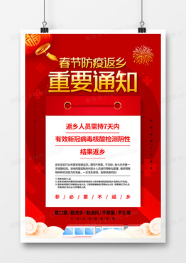 红色简约大气春节返乡非必要不返乡通知海报设计