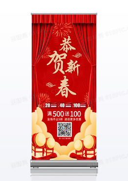 红色喜庆大气喜庆恭贺新春展架易拉宝防疫物资