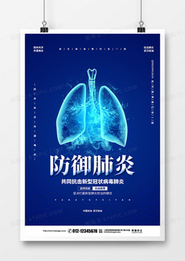 蓝色科技武汉新型病毒防御肺炎宣传海报设计