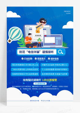 蓝色简约卡通防止电信诈骗公益宣传海报