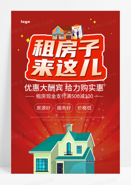 房产中介租房找房房屋中介租赁买卖红色背景海报