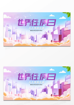 简约时尚炫彩世界住房日宣传卡通展板
