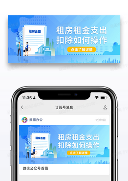 蓝色简约房租抵个税公众号封面配图图片