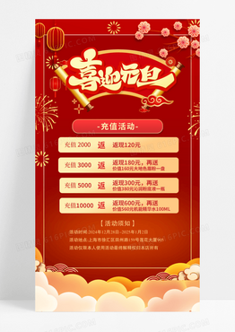 红色烫金喜迎元旦红色充值货特惠充值返利海报