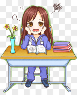 手绘卡通烦恼的女生免抠素材