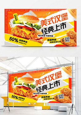 黄色大气美味汉堡美式汉堡经典上市展板设计