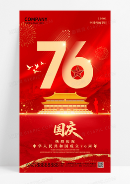红色76周年国庆节繁荣昌盛山河锦绣国庆节宣传海报