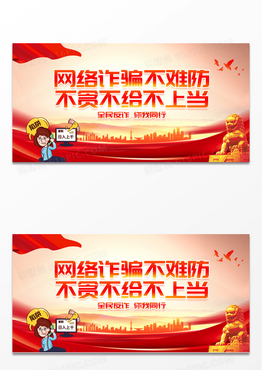 简约红色网络诈骗不难防不贪不给不上当宣传展板反诈展板