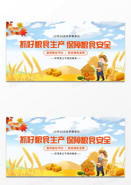 蓝色插画风抓好粮食生产保障粮食安全世界粮食日海报设计