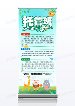 蓝色卡通小饭桌招生啦托管班招生展架易拉宝