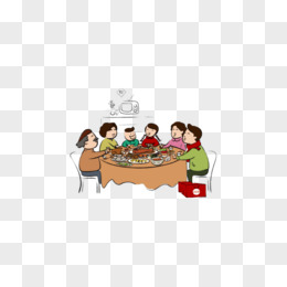 手绘卡通团圆温馨年夜饭场景免抠元素