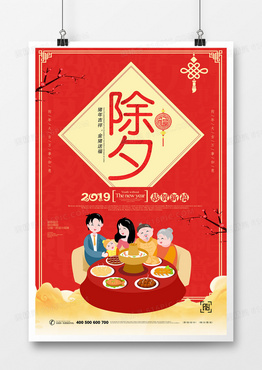 创意卡通时尚2019猪年年夜饭宣传海报设计