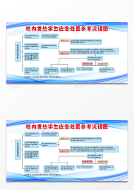 蓝色简约校内发热学生应急处置参考流程图学校展板