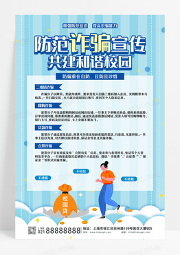 蓝色发射线简约防范诈骗宣传共建和谐校园反诈骗海报设计