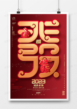 红色创意2023兔年艺术字春节新年海报
