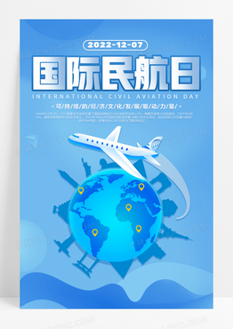 蓝色飞机渐变时尚大气国际民航日宣传海报