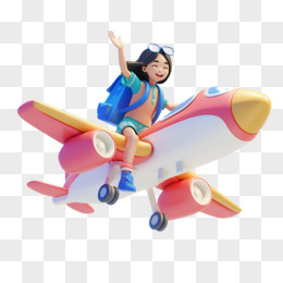 3D插画人物与飞机机场安检等旅游元素主题免抠元素