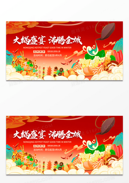 红色大气火锅盛宴沸腾全城火锅宣传展板火锅宣传促销